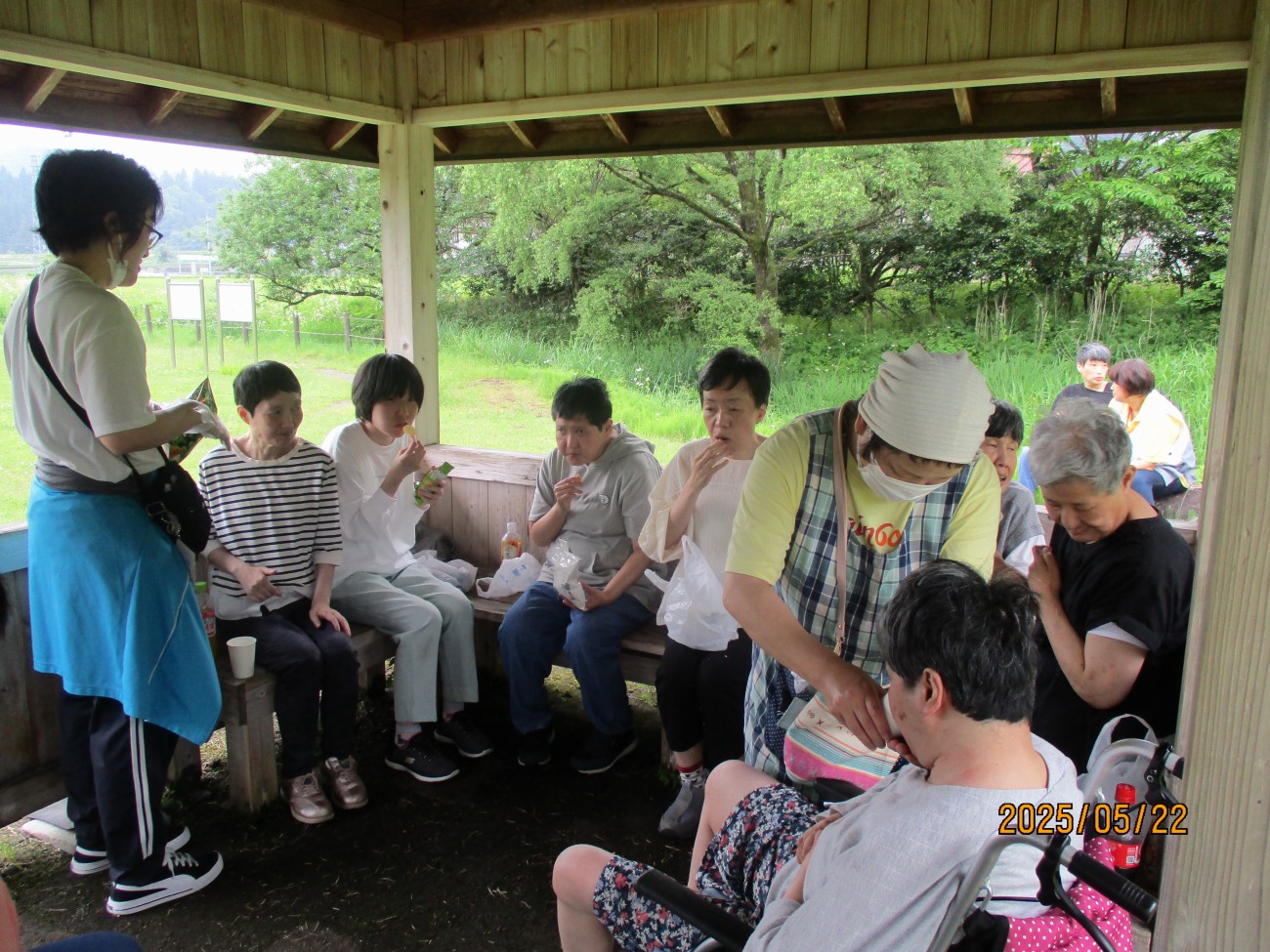 ご利用者の方々は好きなお菓子や飲み物を買ってそれを持って近くの「小百公園」という静かな公園でそれを食べる事にしました。
