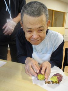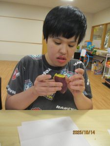帰荘後おやつで収穫したサツマイモを美味しく食べました😋