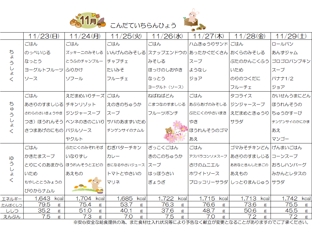 来週は大人気の『麦バターチキンカレー』や栄養満点の『ねばねば丼』が登場予定です!お楽しみに