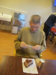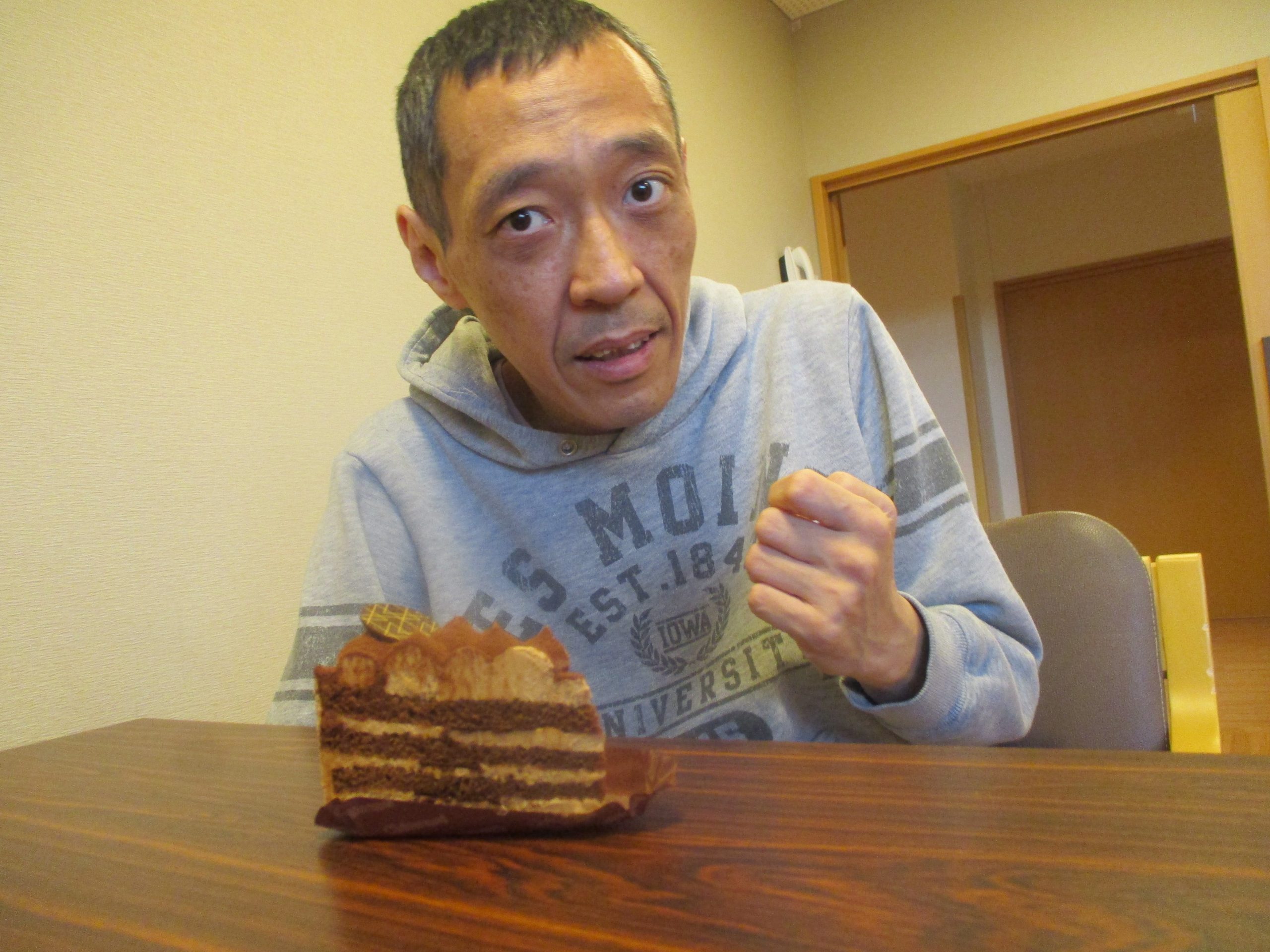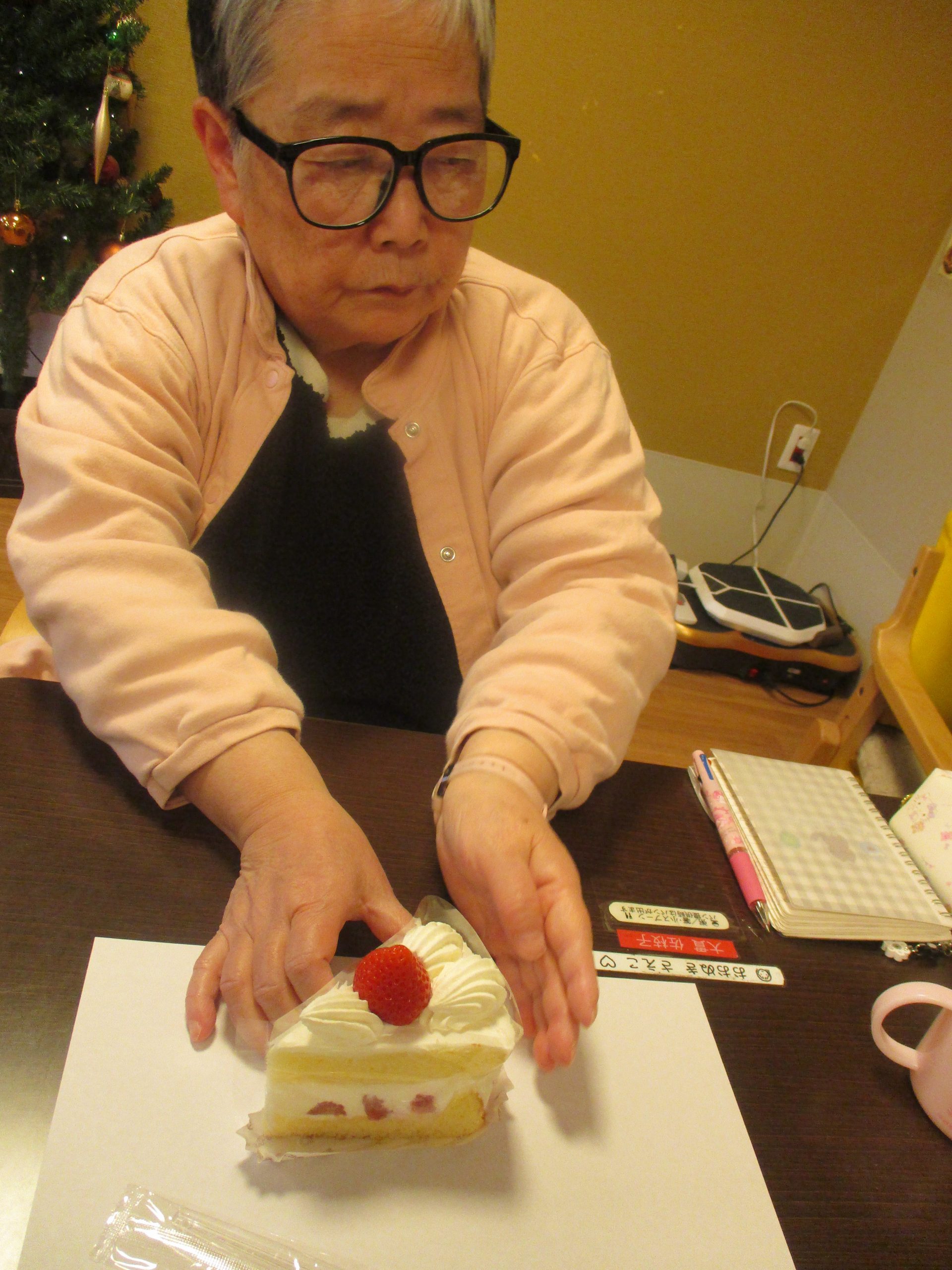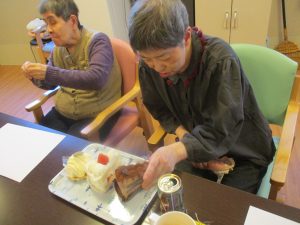 12/31のおやつではケーキバイキングが行われチーズケーキモンブラン、ショートケーキ、チョコケーキの3種類の中から好きなケーキを選びました。