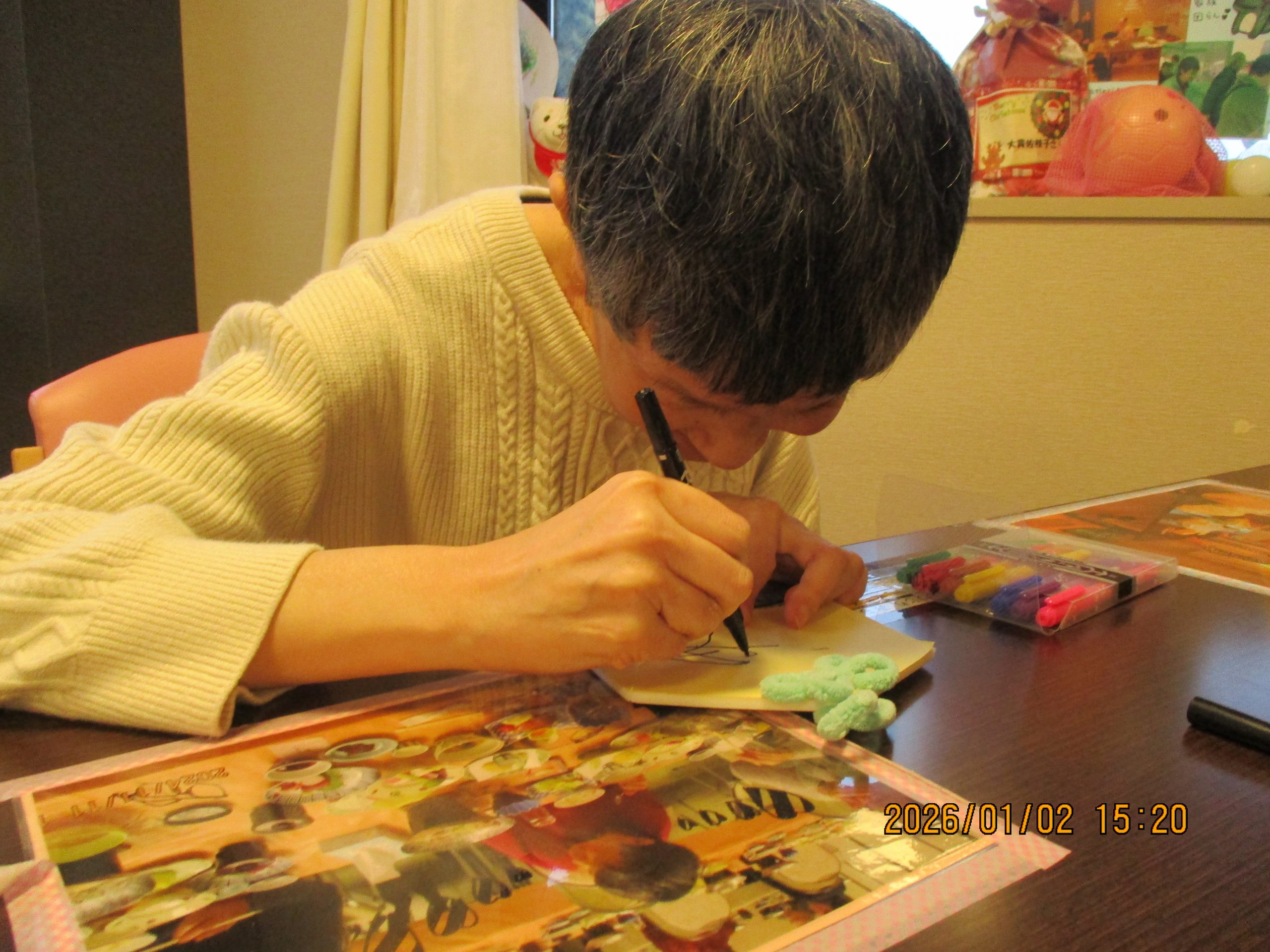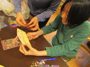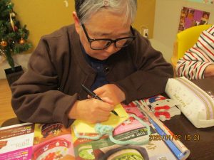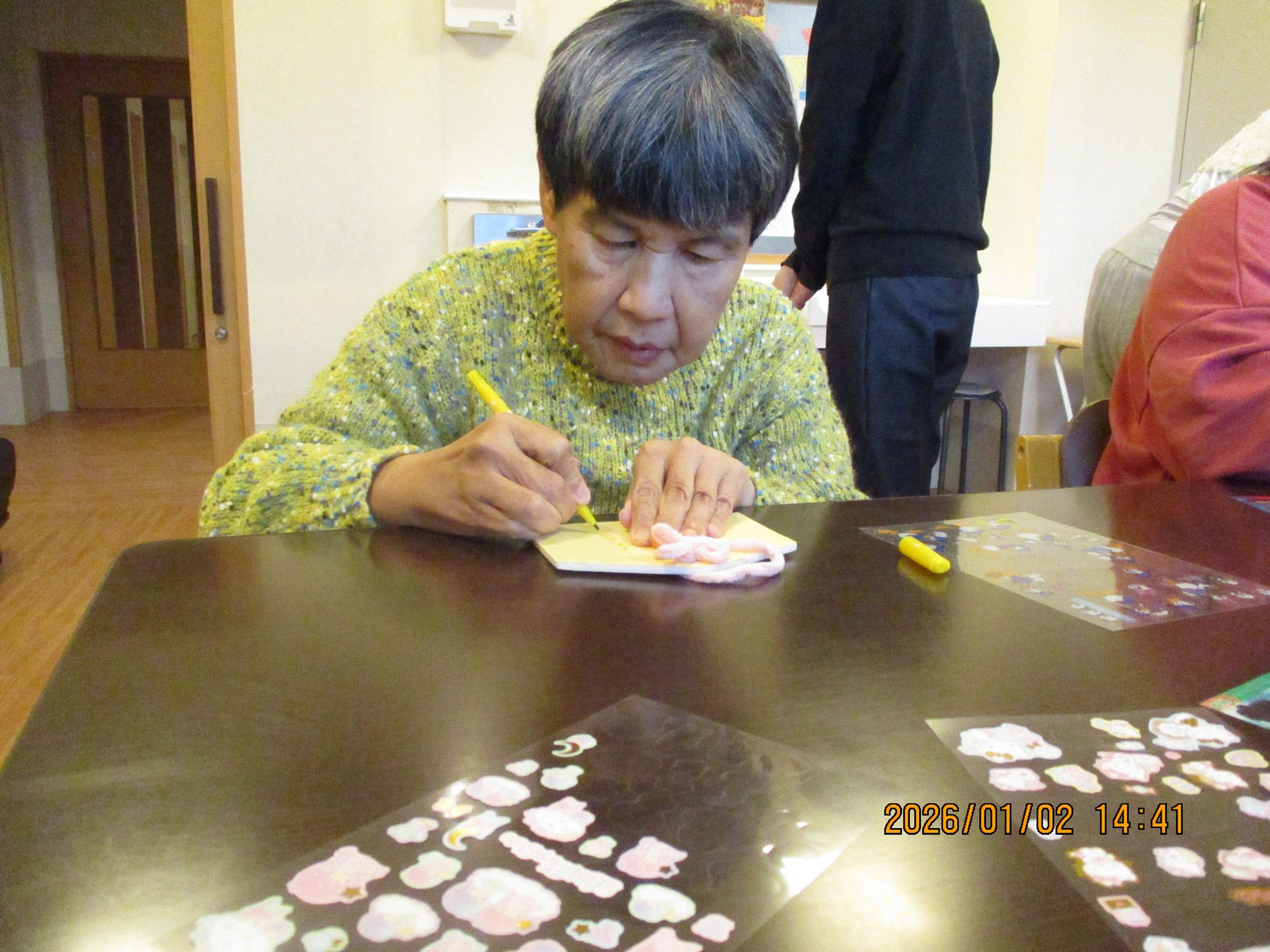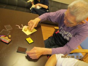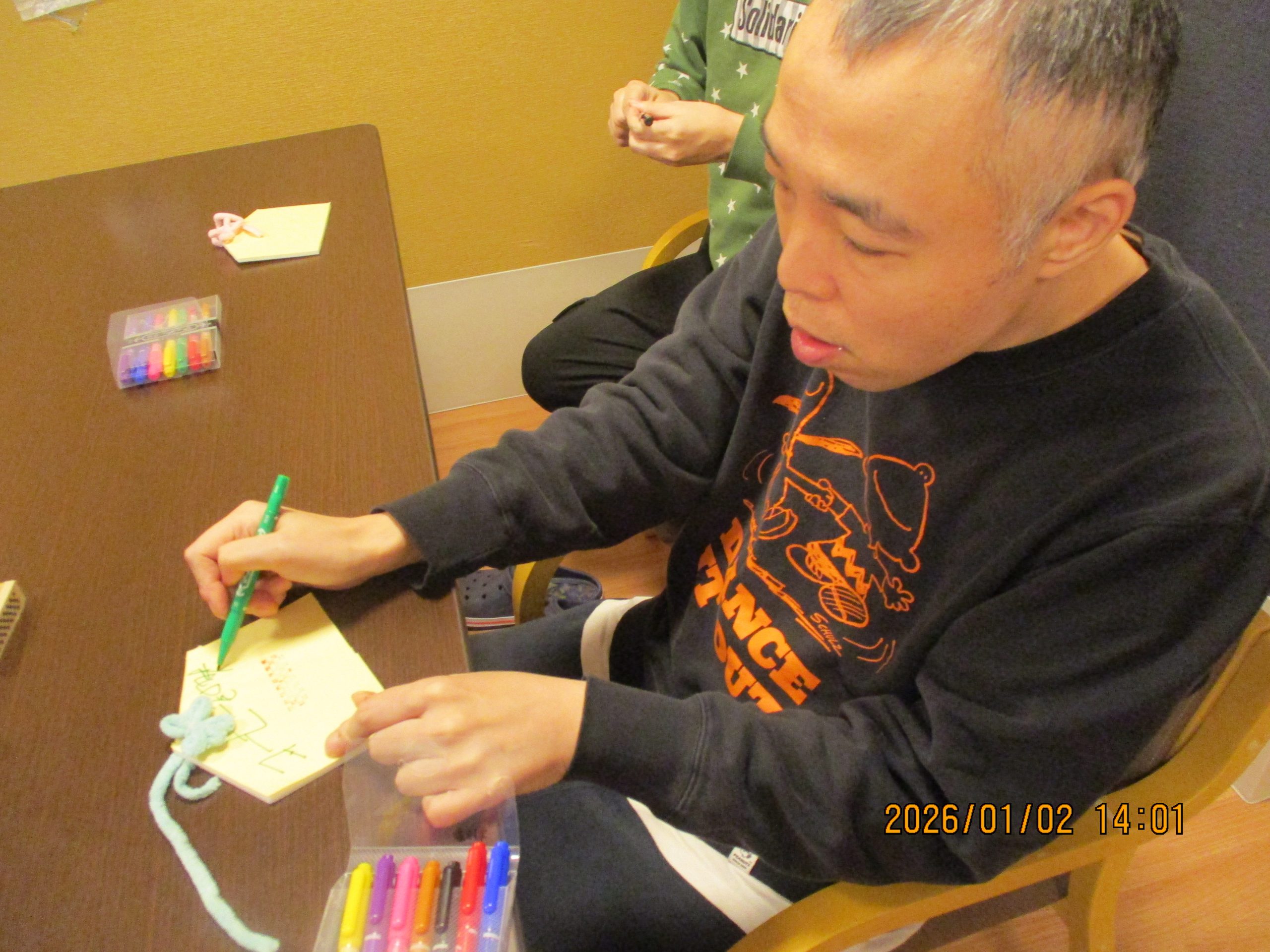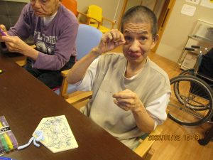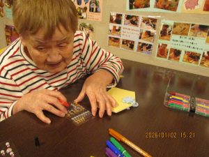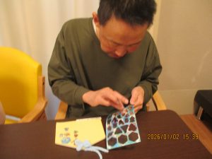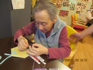 1/2は午年の絵馬を作成しました。スタンプやシールを貼り今年の願いと共に皇海荘で楽しくすごせますようにと願いながら作成されてました。