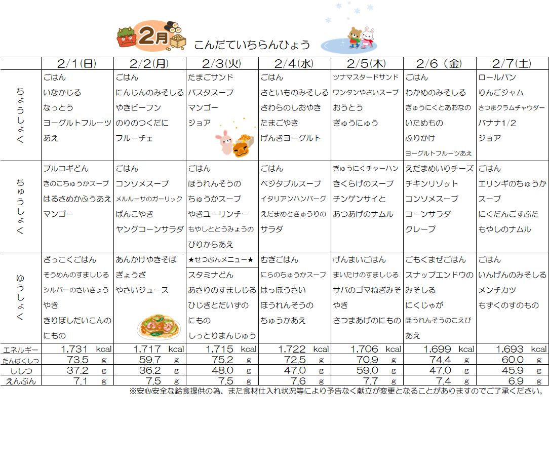 寒波が居座り、寒さが一段と厳しい時期になりますが栄養をしっかり取って元気に過ごしましょう