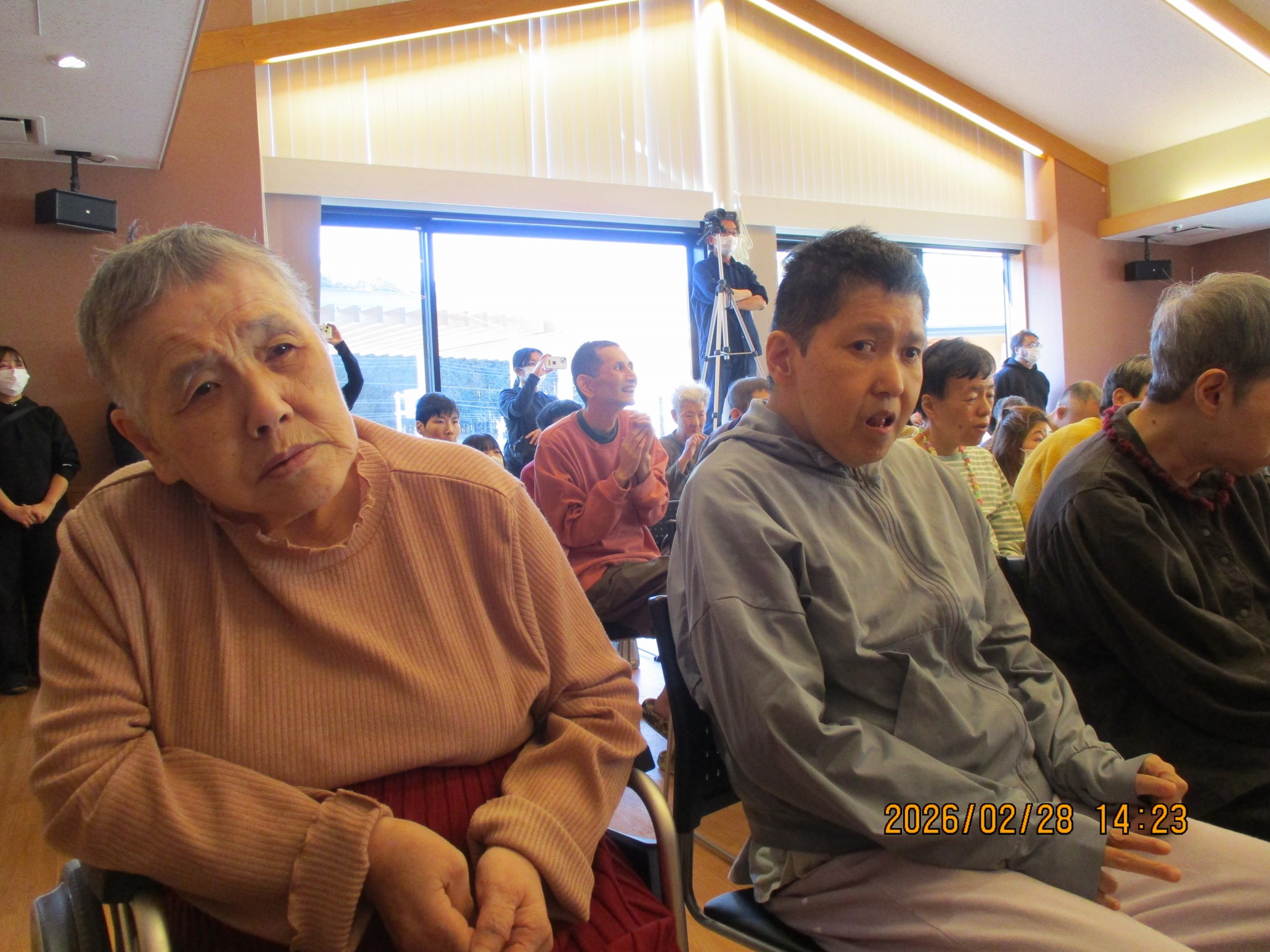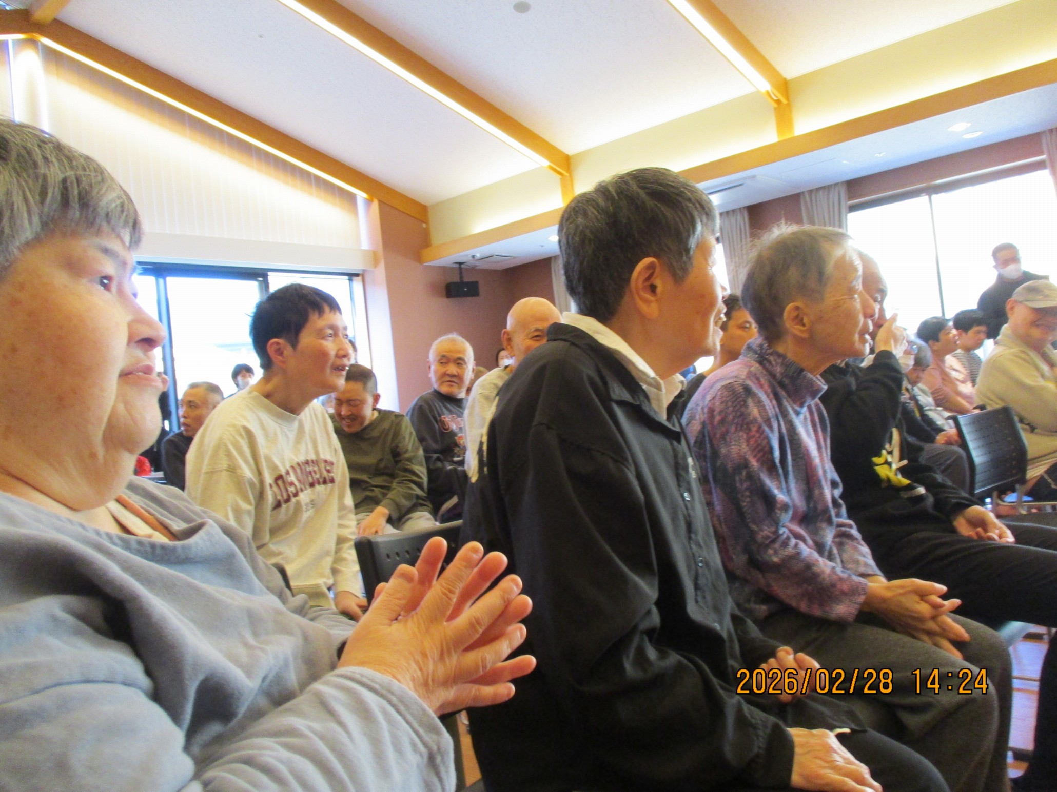 演奏を聴くため、皇海荘と第二皇海荘の両施設のご利用者が集まりました。