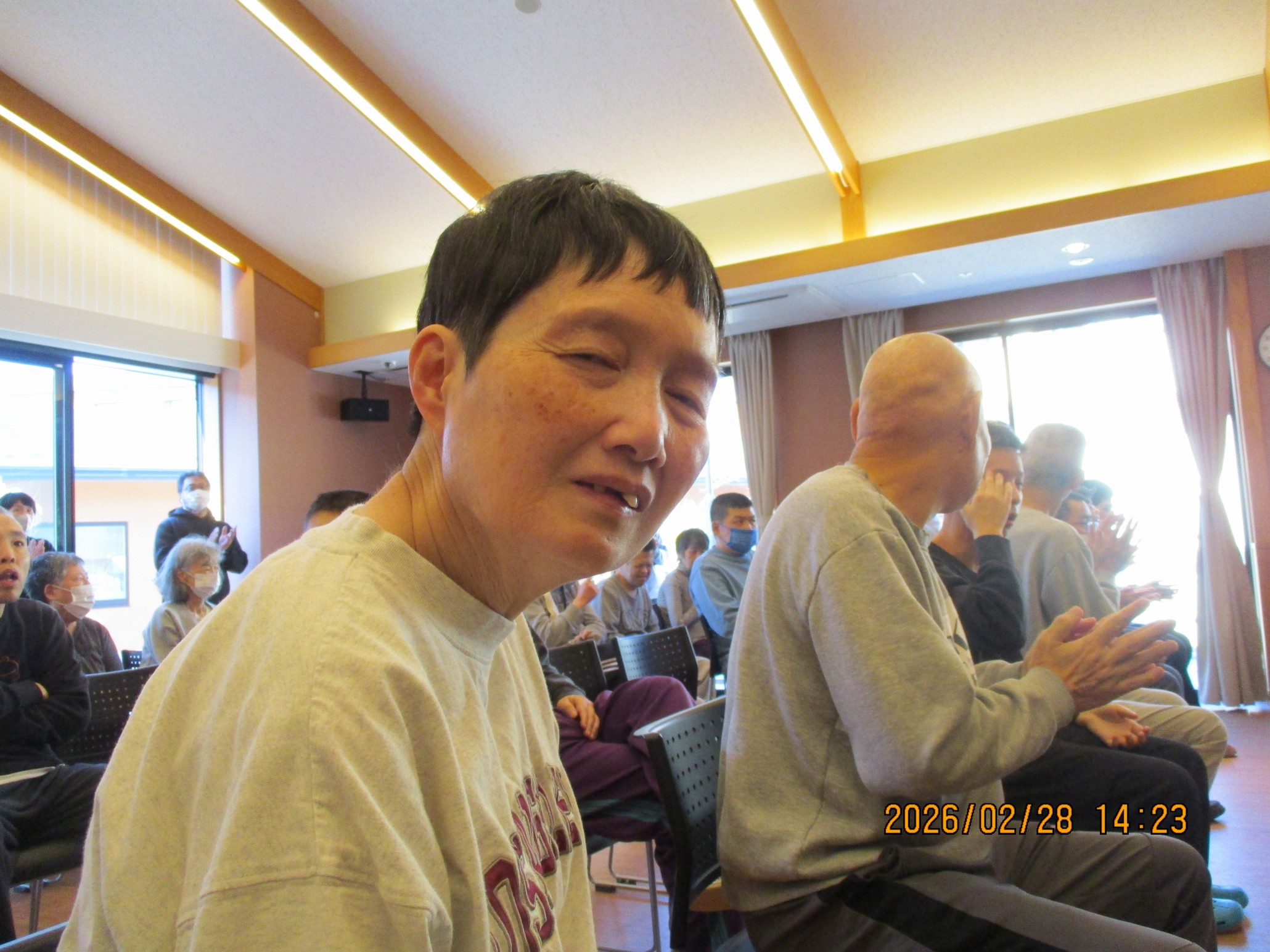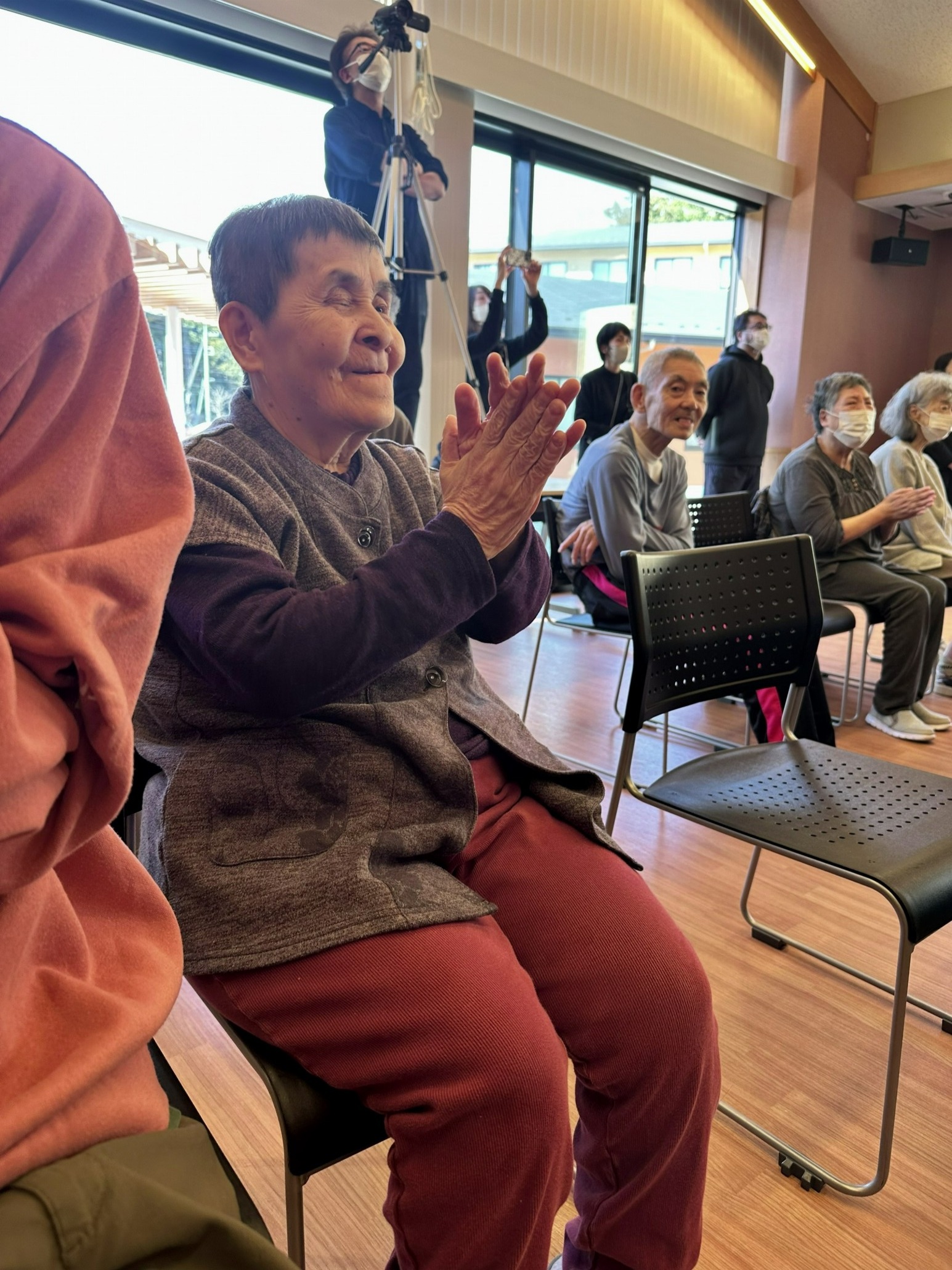 楽しんでいらっしゃいました。御利用者も手拍子で参加できる曲を用意して下さった事で一緒に手を叩きながら曲に合わせることが出来てそれも